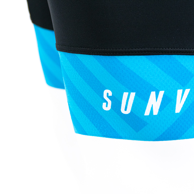袖はカットオフされ快適性と軽量性を両立、パンツ部分には2種類の生地を使い分け、筋肉とパッド部分をしっかりとホールドしながら軽量性も実現しています。