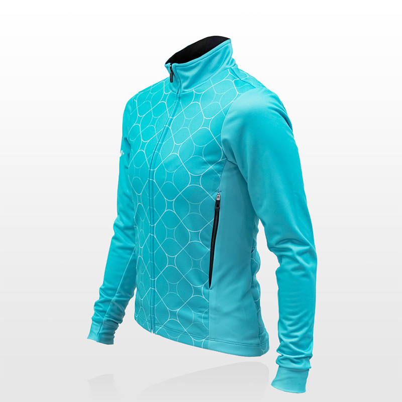 前面には防風性に優れた生地、背面には透湿性に優れた生地を採用。衣服内の温度調整ができるようサイドに外気を取り入れるベンチレーションファスナーを装備。