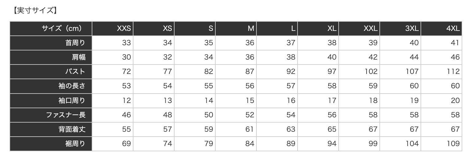 ■ジップタイプ:フルジップ