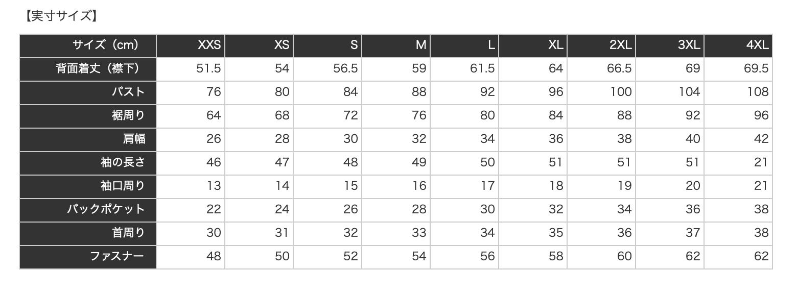 ■ジップタイプ:フルジップ