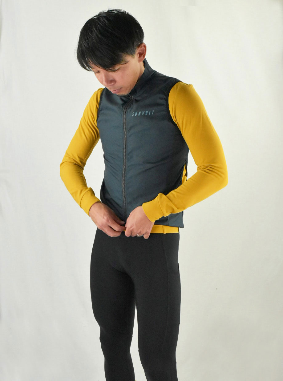 着用したたままサイクルジャージのバックポケットにアクセスできる機能性の高いウインドベスト。