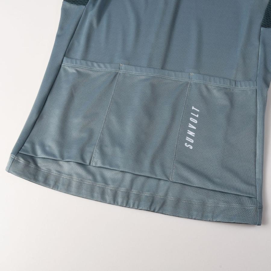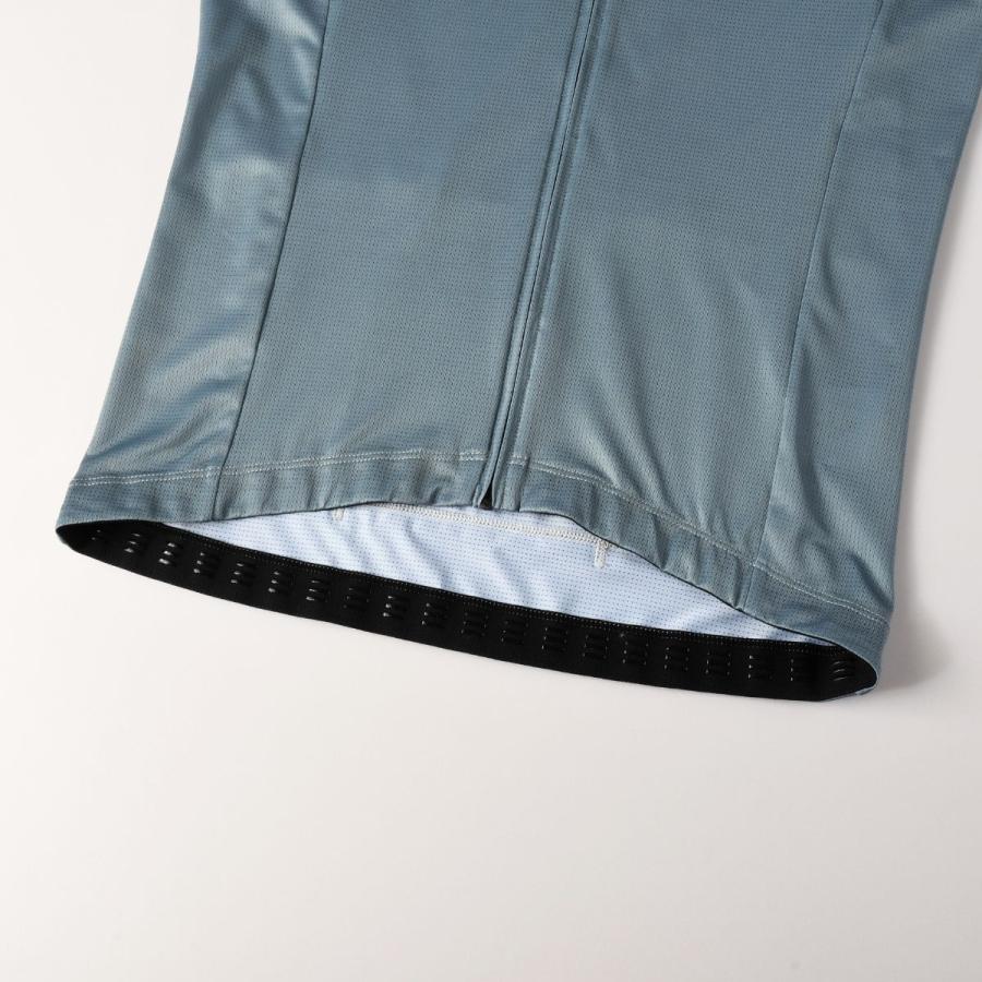 袖にはエアロ効果の見込まれる縦線生地、 ボディーにはさらっとした肌触りの良い高性能な生地を採用し、タイトなシルエットでありながらも包み込まれるような着心地の良さです。