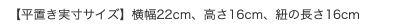 【平置き実寸サイズ】横幅22cm、高さ16cm、紐の長さ16cm
