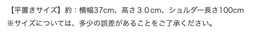 【平置きサイズ】約:横幅37cm、高さ30cm、ショルダー長さ100cm