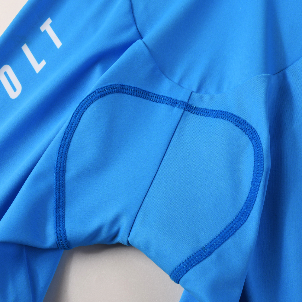 下半身には裏起毛薄型子供用パッドを搭載し、快適な着心地と保温性を確保。パッドはバイクはもちろん、スイムやランに邪魔になりにくい薄型タイプです。裾には滑り止め加工を施し、レース中のズレを防ぎます。
