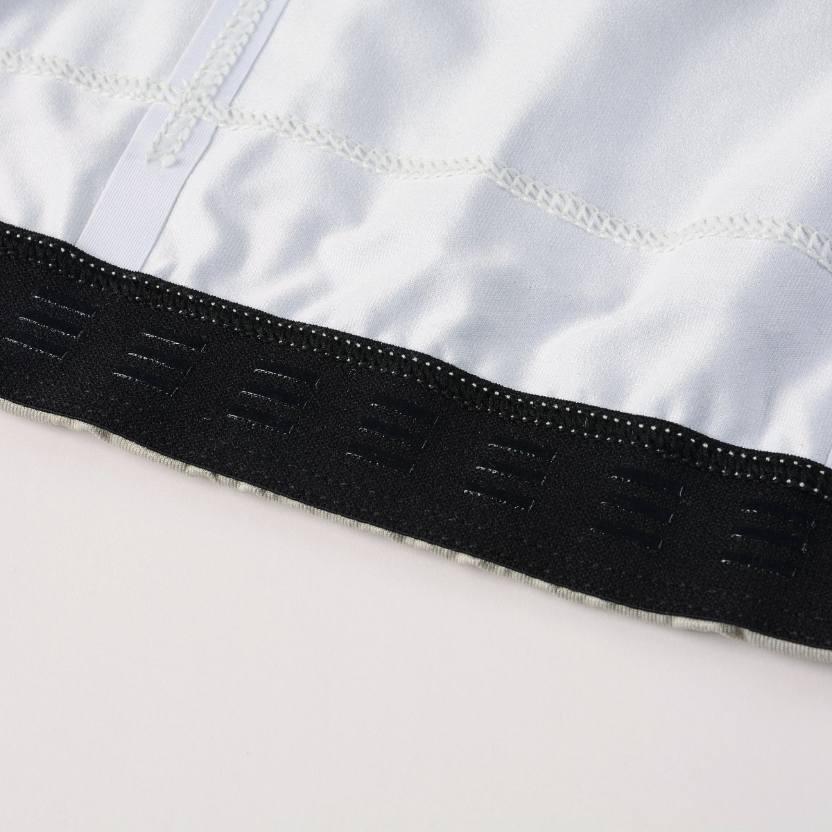 背面には、伸縮を抑えるテープを縦に2本配置し、バックポケットにポーチやスマホを入れた際に垂れにくくしております。