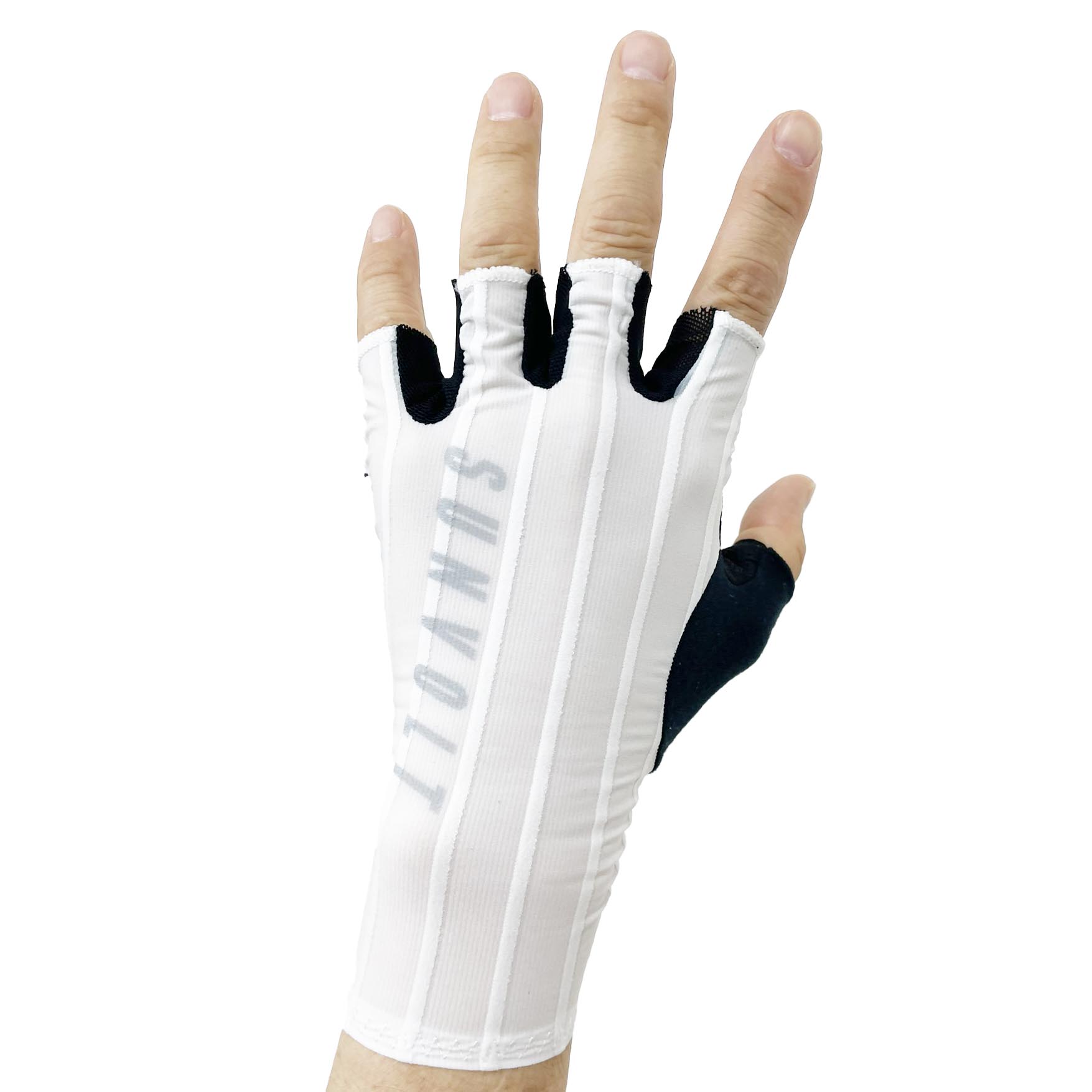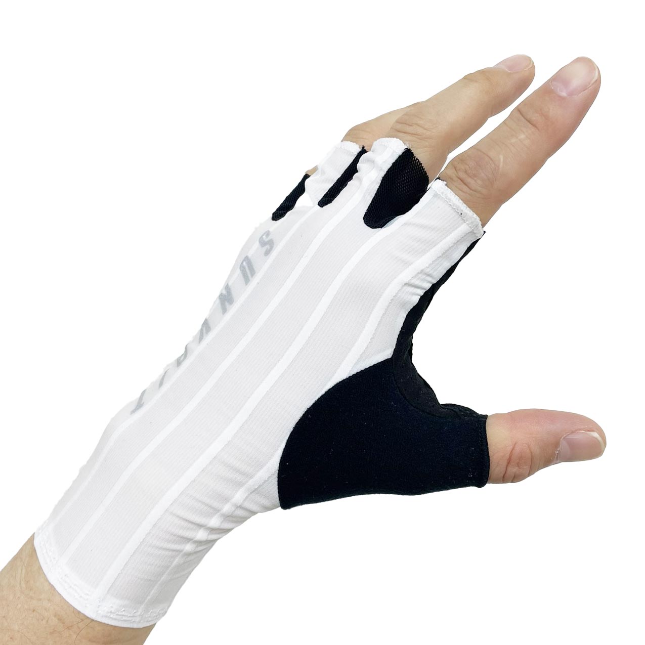 手の平部分はしなやかで程よい厚みの滑りにくい生地を使用。レースからツーリングまで幅広いシーンで活躍します。また、手首の日焼けを防ぎたい女性にもご使用いただけます。最初の着脱はきつめですが、数回でなじんできます。中指と薬指の手のひら側にある折り返しを、反対の手の指でひっかけて引っ張ると、簡単に外れます。