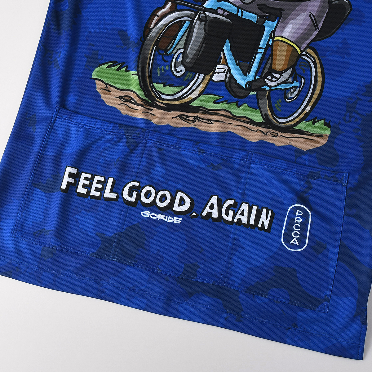 近所でのリラックスライドやグラベルライドにぴったり。サイクリング以外のアウトドアスポーツにも活用できます。袖はセットイン仕様で、裾にはスリットを入れ、後ろ側を40mm長めにデザインしました。襟ぐりは襟伏せテープにより縁をスムーズに仕上げ、肌触りも優しく、長時間の着用や汗をかく場面でも快適です。