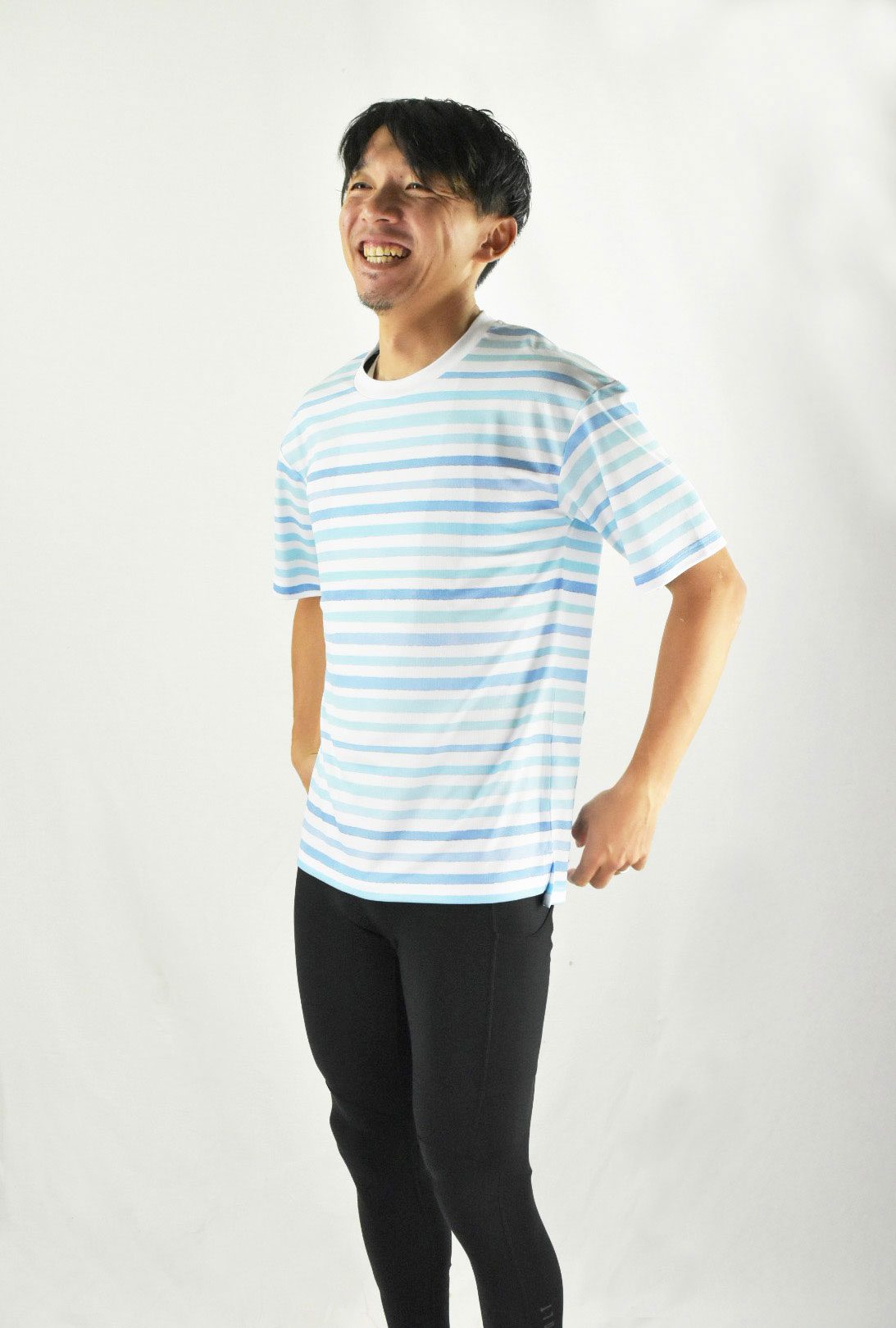 ゆったりとしたシルエットでリラックス感を演出し、肩と腕周りを広めにしたワイドサイズに仕上げました。吸汗速乾性と伸縮性に優れた高機能素材を採用し、さらりとした快適な着心地です。