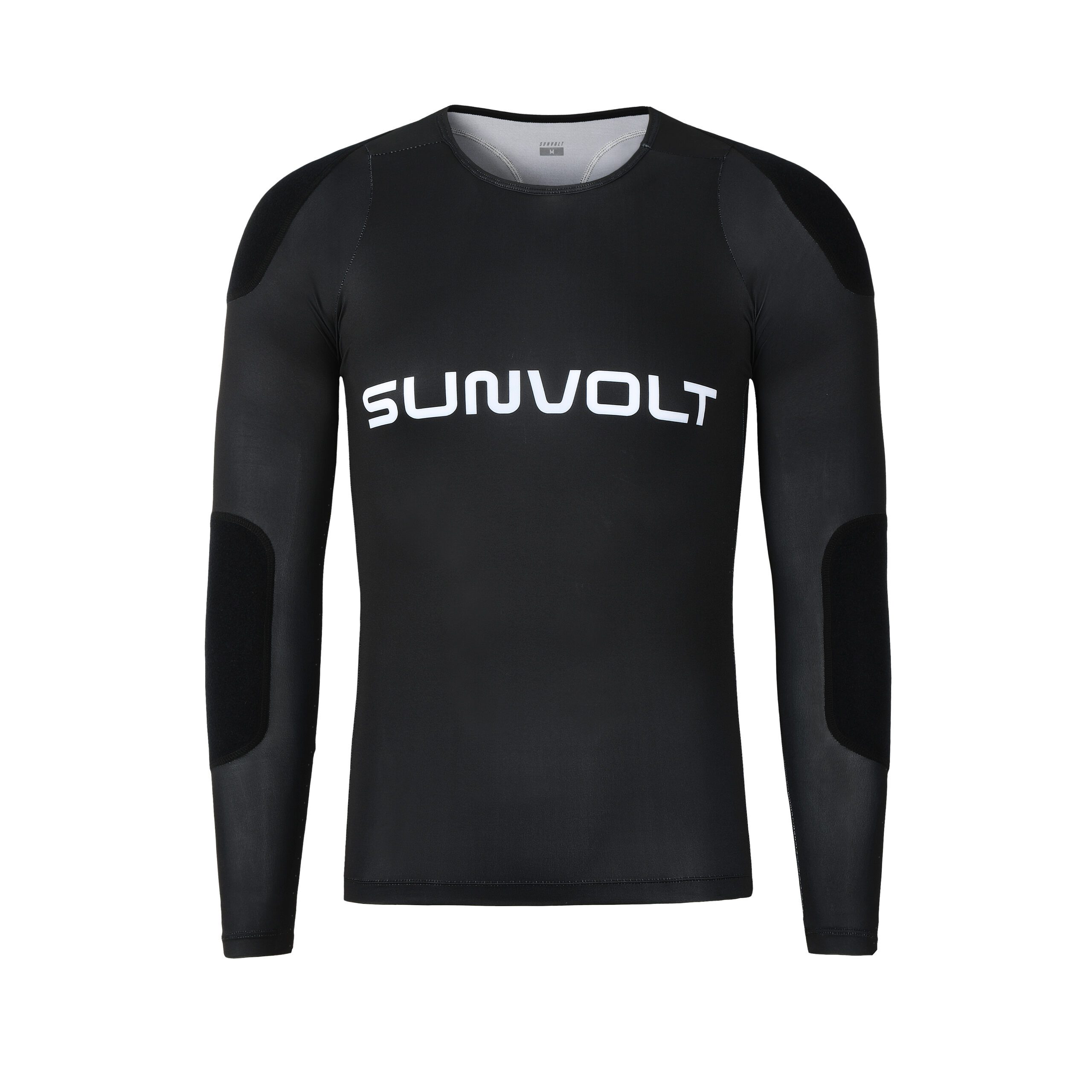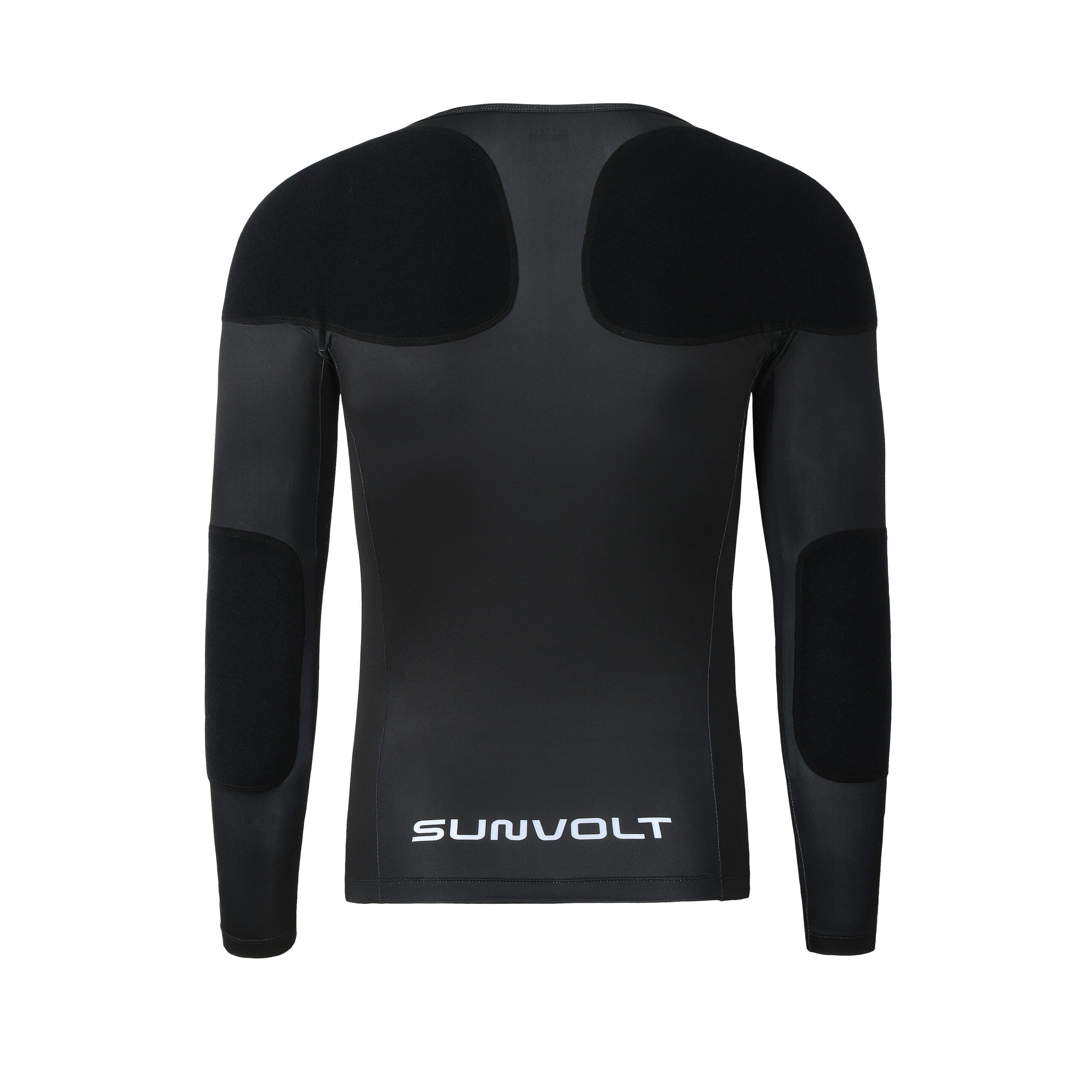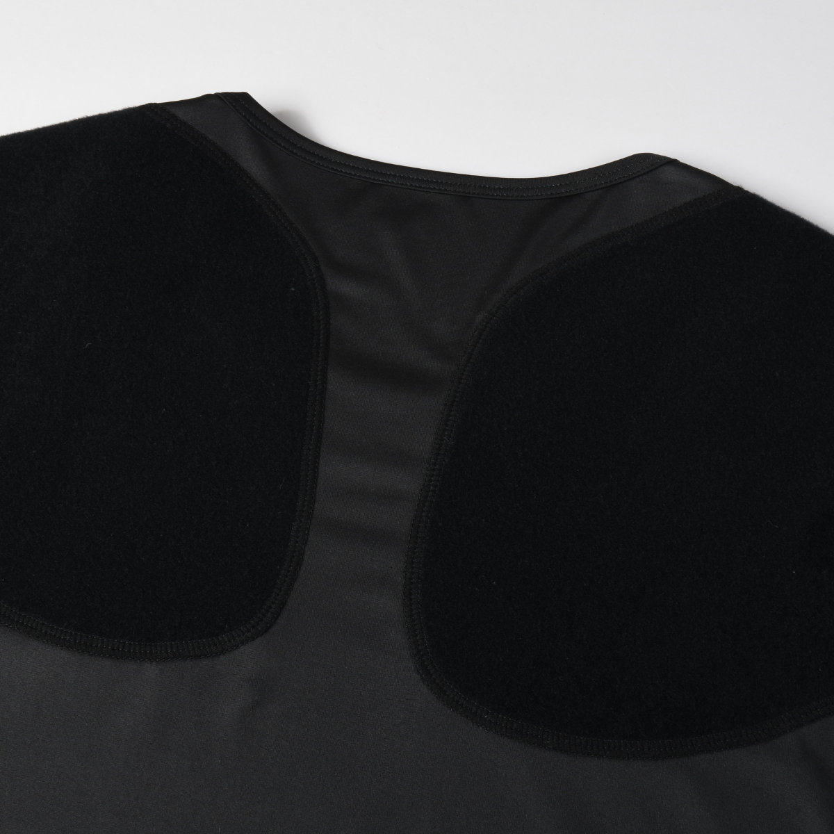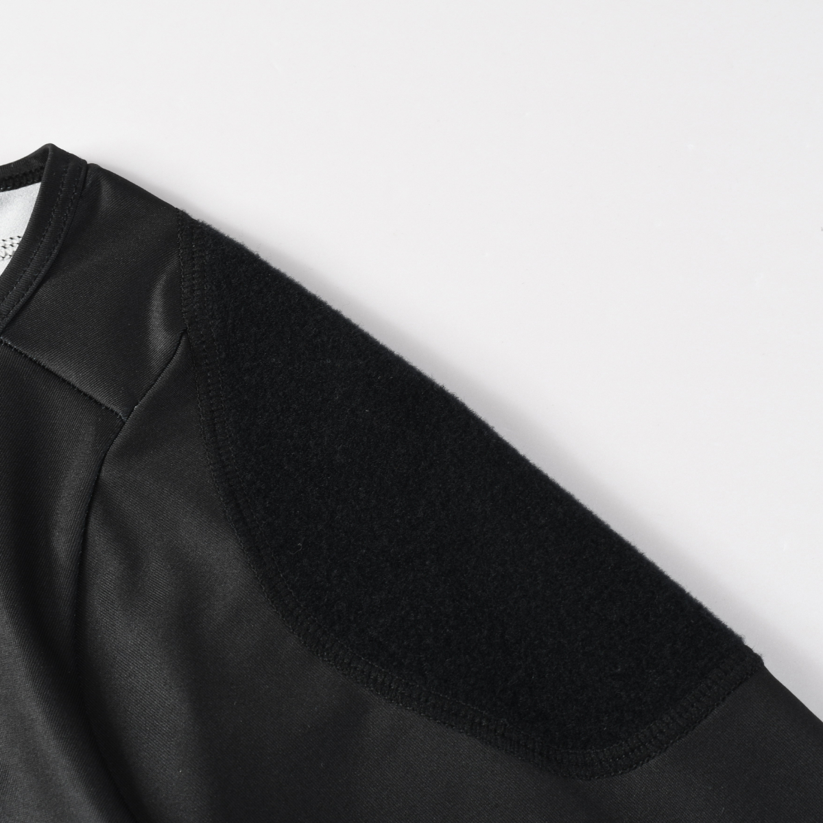 三角筋〜肩甲骨ライン、そして肘に専用パッドを配置。